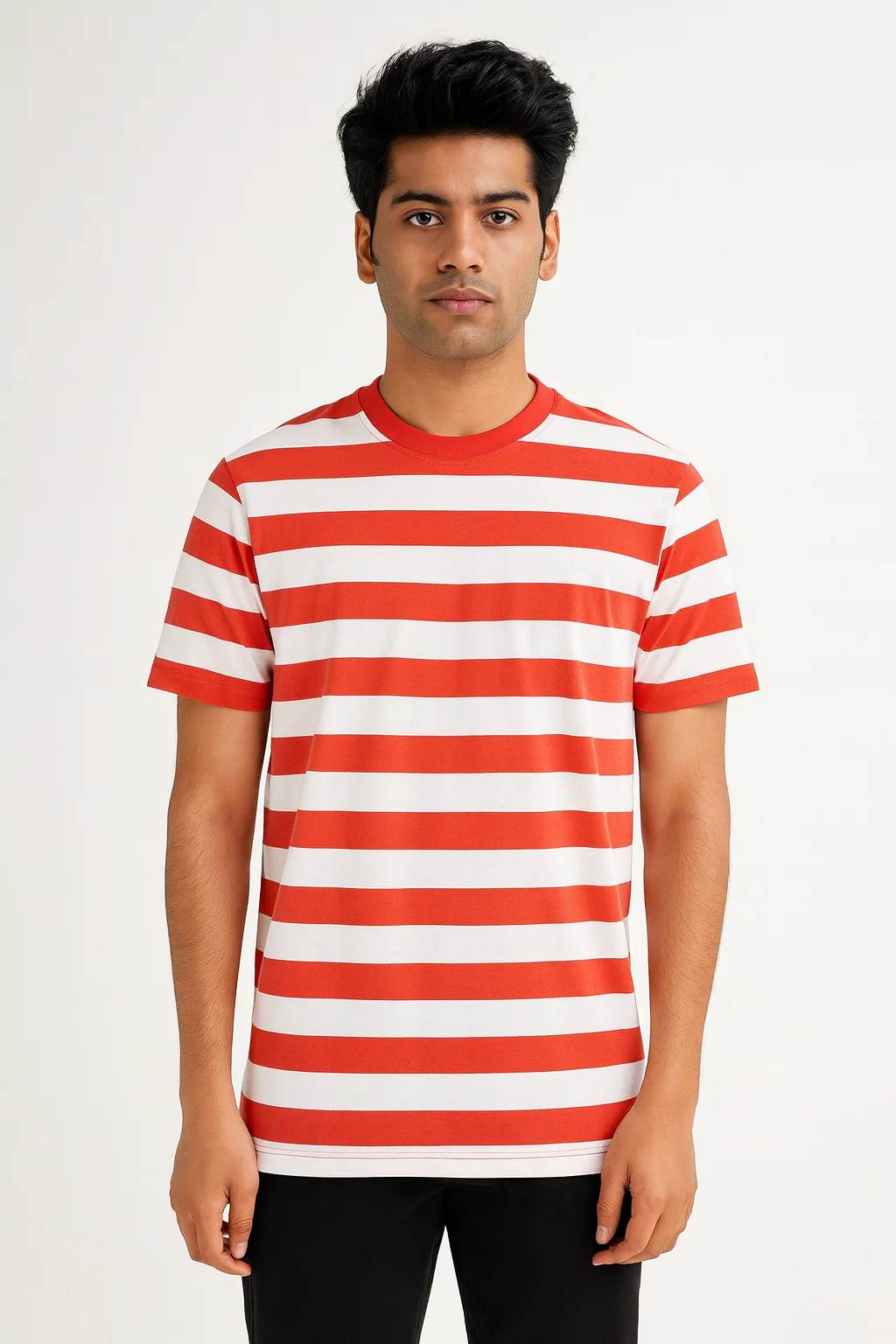 Premium Yarn Striped Cotton T-Shirts (White/ Red)